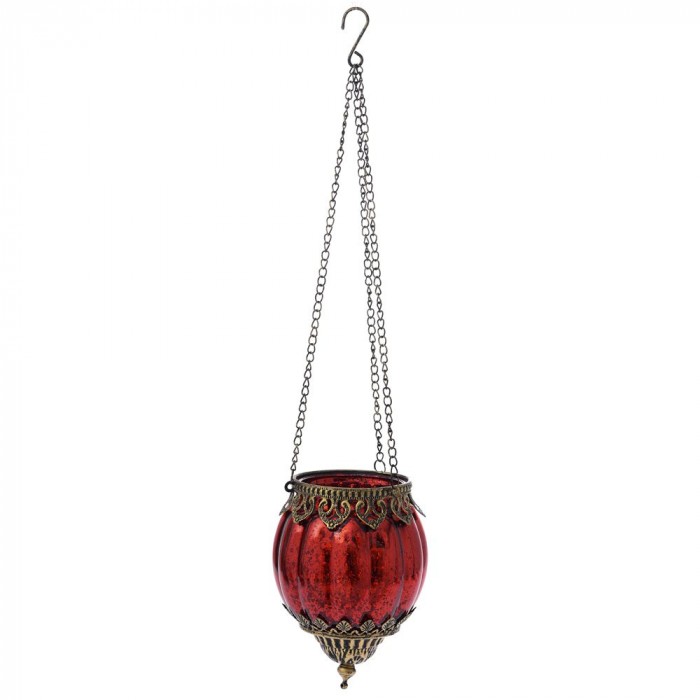 Висящ свещник стъкло с метален обков, червен, Ф12х16см