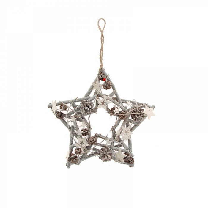 Висяща звезда, заснежена, пръчки, декор, 34 см