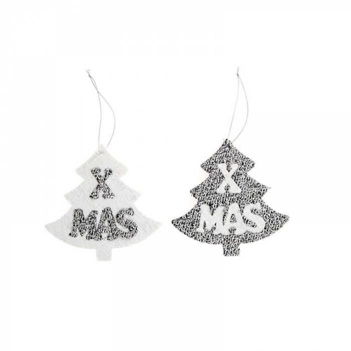 Висящи орнаменти от текстил, елхички, сребро, 12 см, к-т 2 бр.