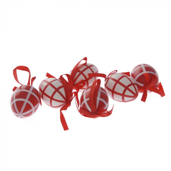 Висящи яйца черв.каре,6cm,к-т 6бр