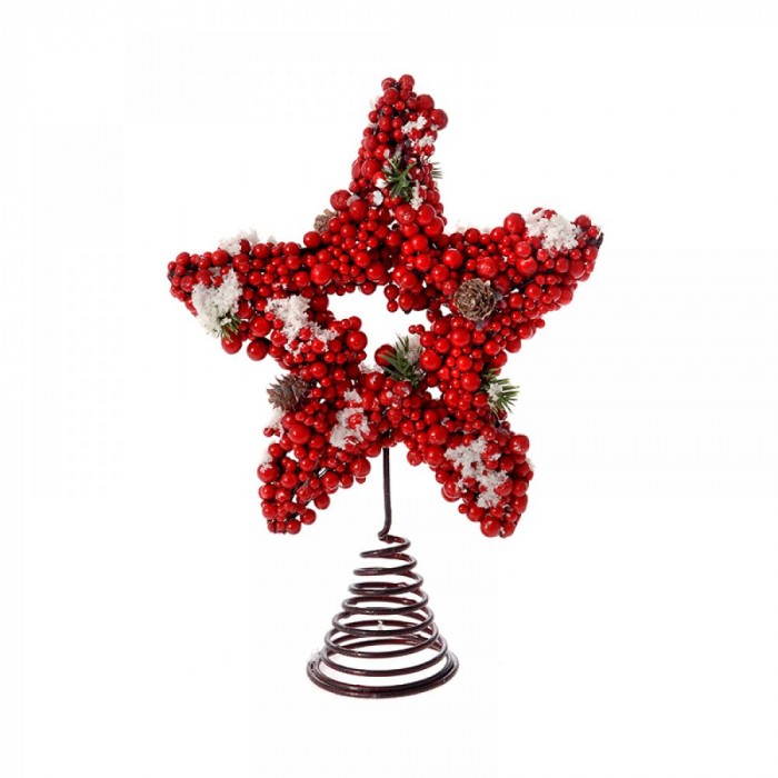 Връх за елха, звезда от червени боровинки, 27х21 см