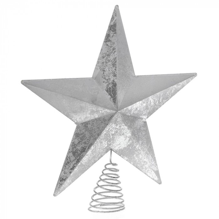 Връх за елха, звезда, метал, сребро, 25х30 см