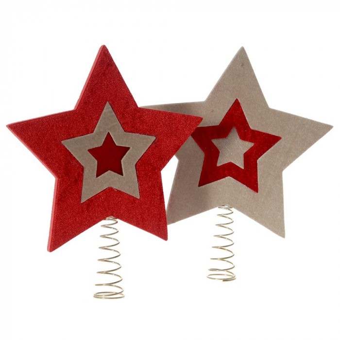 • Връх за елха, звезда, кадифе, червена, 20 см