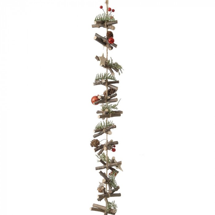Гирлянд дървени пръчки и декорация 100СМ, червени топчета