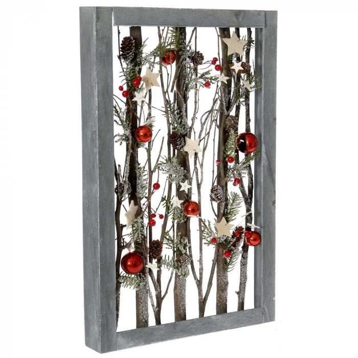 Декорация рамка дърво с коледна украса 37Х57СМ