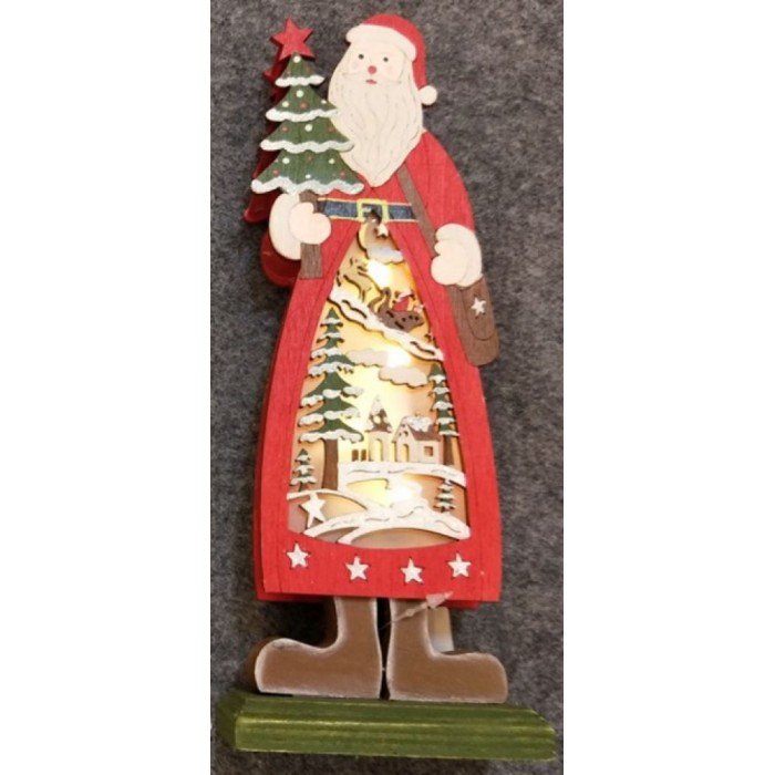 Дървен Дядо Коледа, светещ, 9х5х23 см