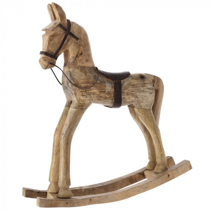 Дървен люлеещ се кон с кожено седло, 38х39 см