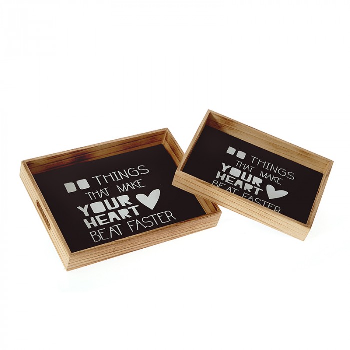 Дървен поднос HEART, черен, SET/2 38X28CM