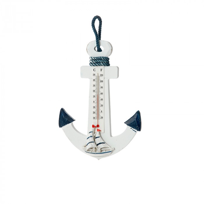 Дървен термометър, котва, бяло и синьо, 22х15 см