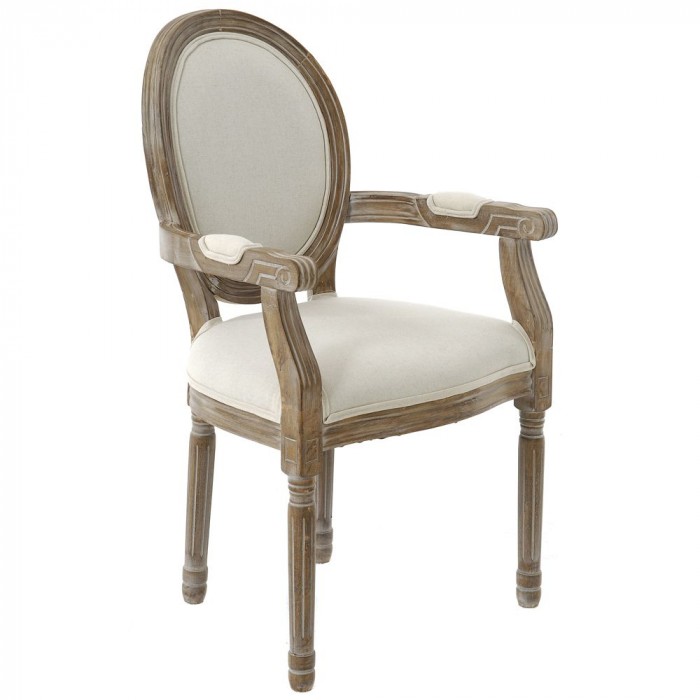 Дървен стол с облегалка и подлакътници, кафяво/бяло претрито, 56?46?48/96СМ