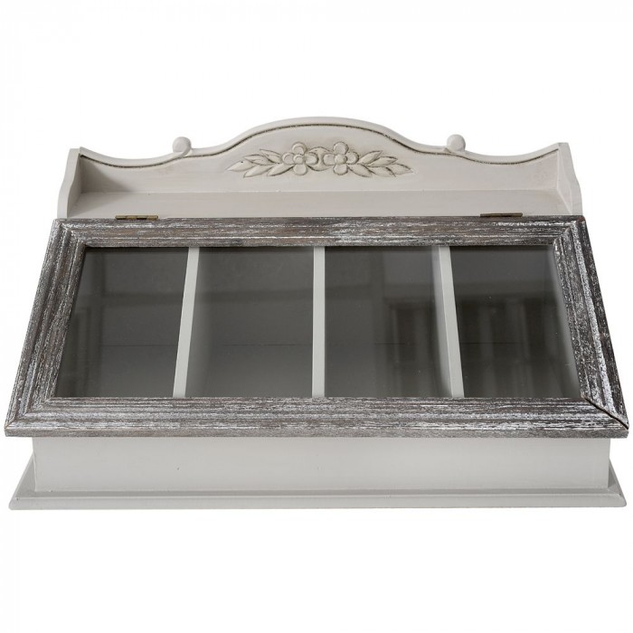 Дървенa кутия за прибори, ретро бяло, 44х26х24 см