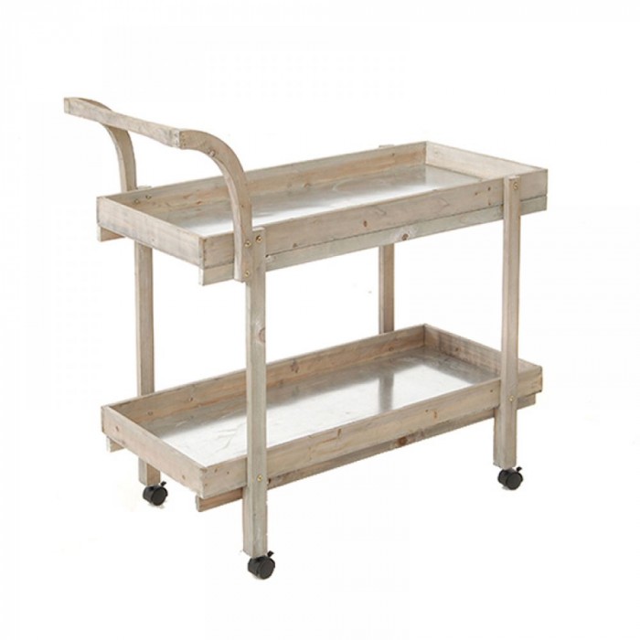 Дървен щанд с метални плотове, дръжка и колелца, 92Х44Х96СМ