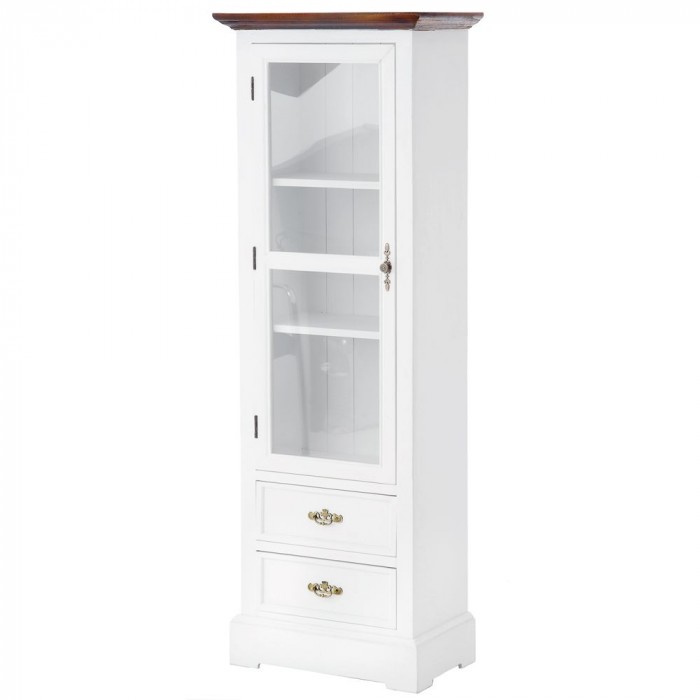 Дървен шкаф с врата и чекмеджета, бял, 55х34х161 см
