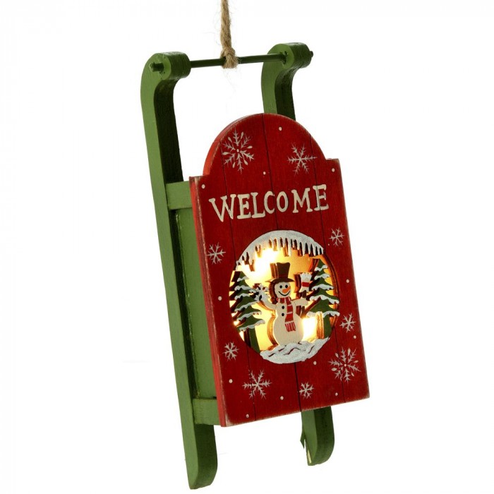 Дървена висяща светеща шейна , червена, 7,5х17 см