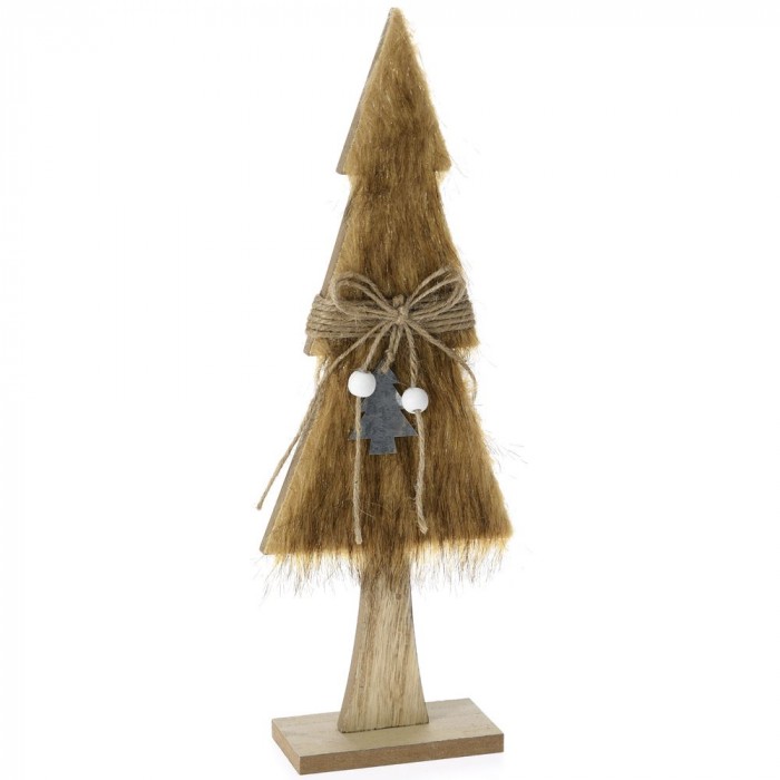 Дървена елха на стойка, натурал с косъм, 15х5х35 см