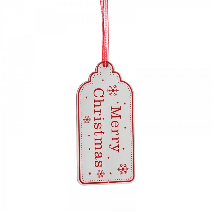 Дървена висяща табелка "MERRY CHRISMAS", бяла, 7х14 см, к-т 3 бр.