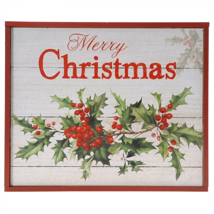Дървена картина MERRY CHRISTMAS, имел, 24х20 см
