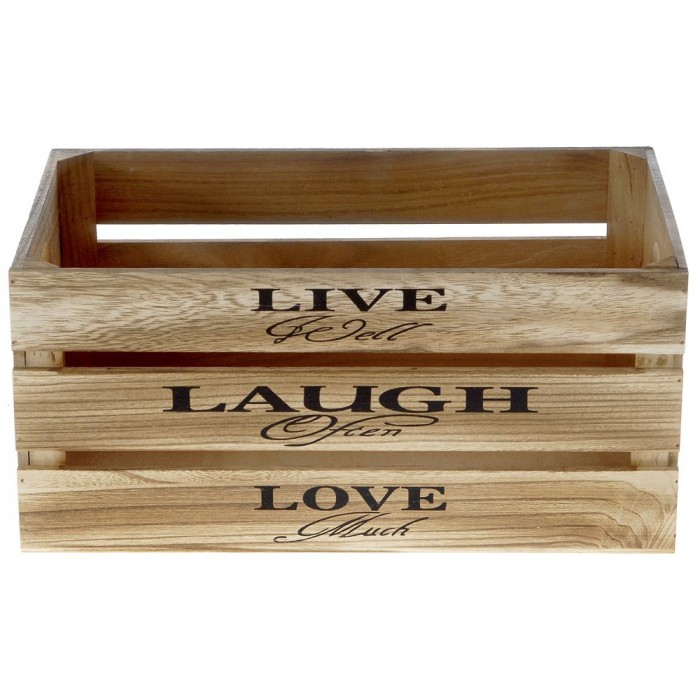 Дървена касетка, натурал, LIVE ,LAUGH, LOVE, 44х27х20 см