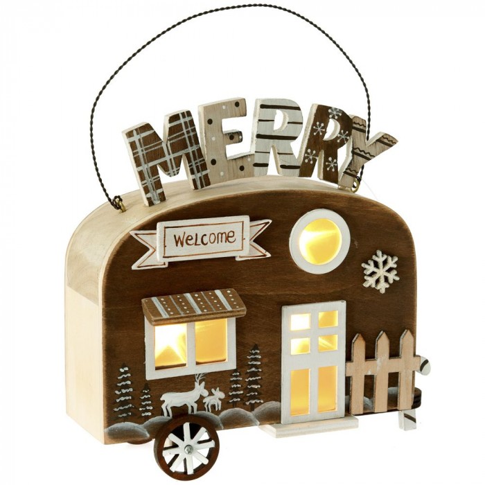 Дървена светеща каравана, кафе, 18х7х23 см