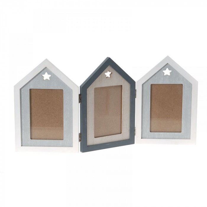 Дървена рамка за снимки, тройна, двуцветна, 50Х25СМ