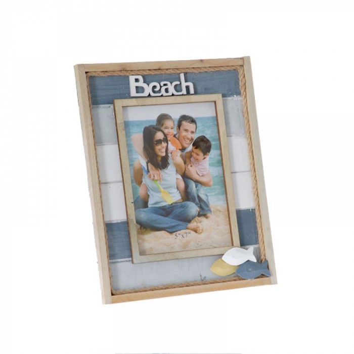 Дървена рамка за снимки, синьо-зелена, 22х27 см