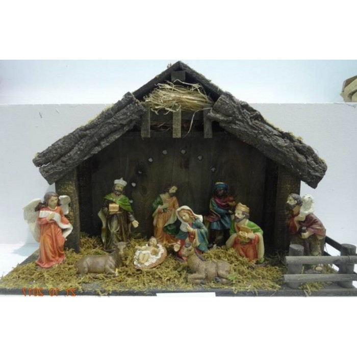 Дървена сцена РОЖДЕСТВО с поли фигури, 51х18х34 см