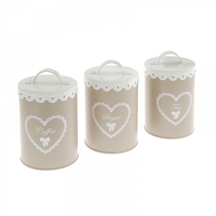 Метални буркани,комплект за кафе и захар,чай,декор-сърце и дантела,11х15 см