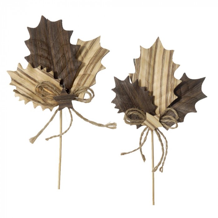 • Дървени листа на клечка, к-т 2 бр., кафяво, 12х28 см