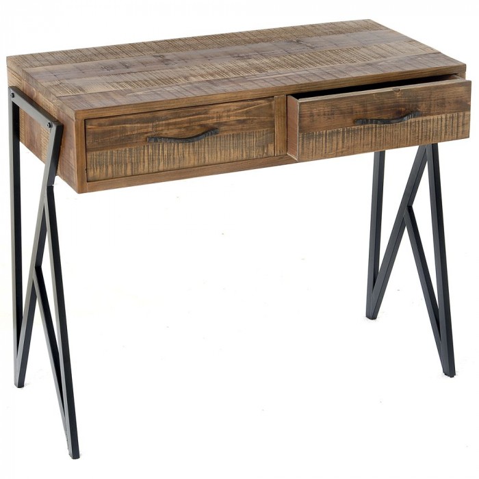 Дървено бюро с две чекмеджета, метални крака, 86?38?76СМ