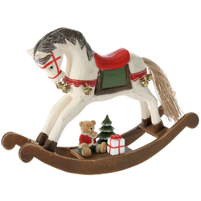Дървено люлеещо се конче, бяло, 25х6х18 см