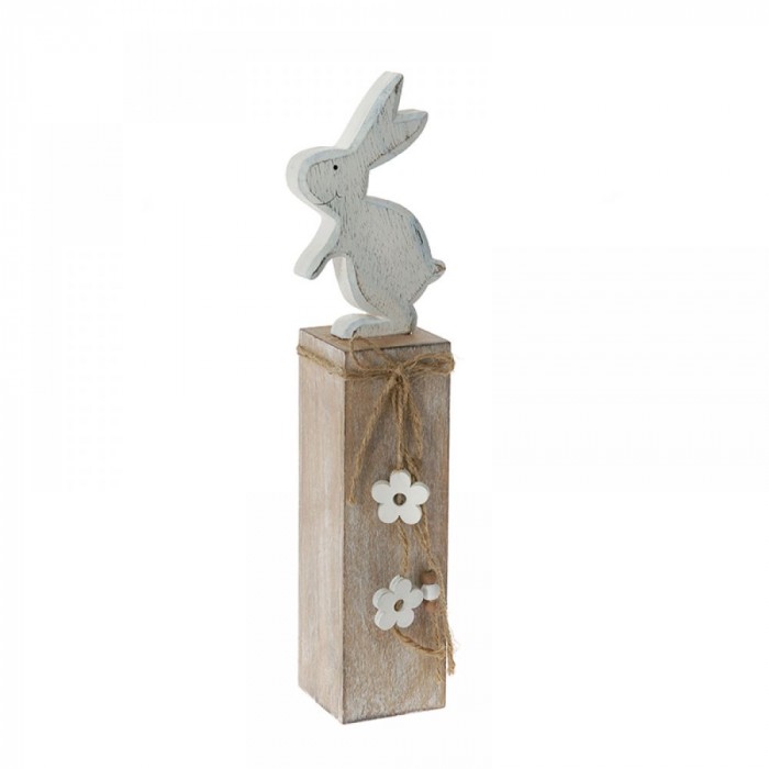 Дървено бяло зайче на постамент 1, 6х6х34 см