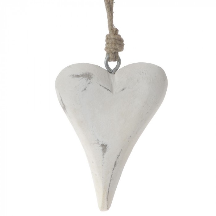Дървено висящо сърце, претрито бяло, 6х10 см
