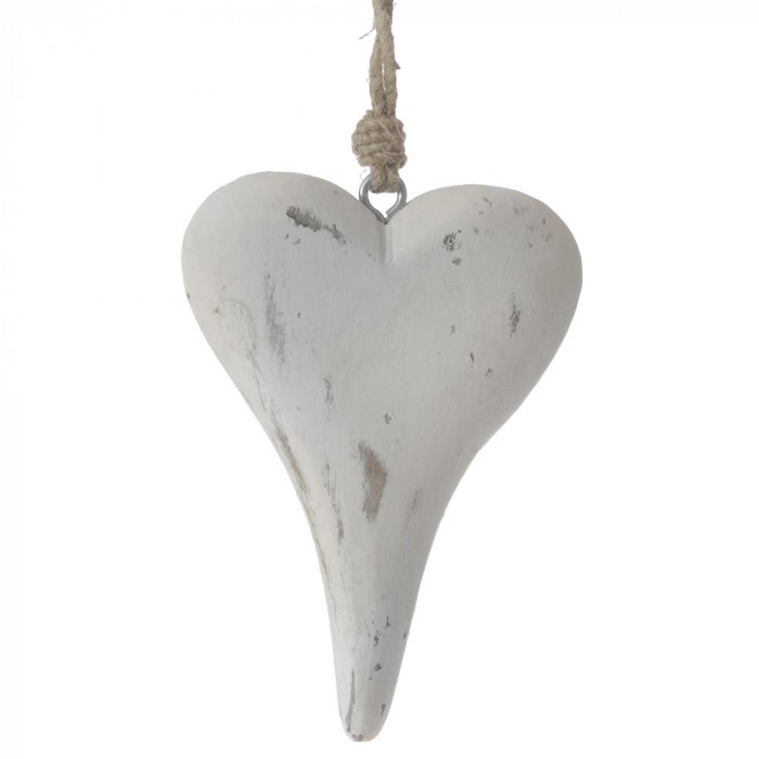 Дървено висящо сърце, претрито бяло, 10х16 см