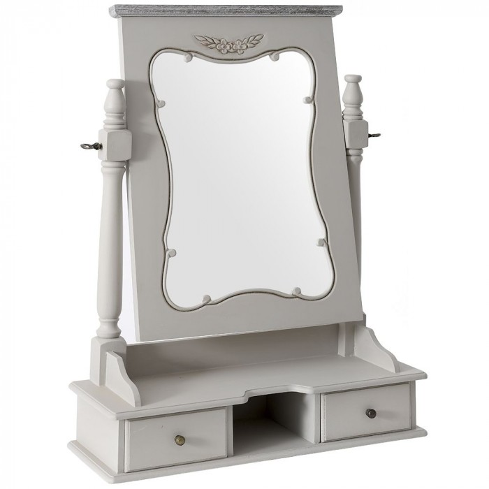 Дървено огледало с тоалетка, ретро бяло, 48х68 см
