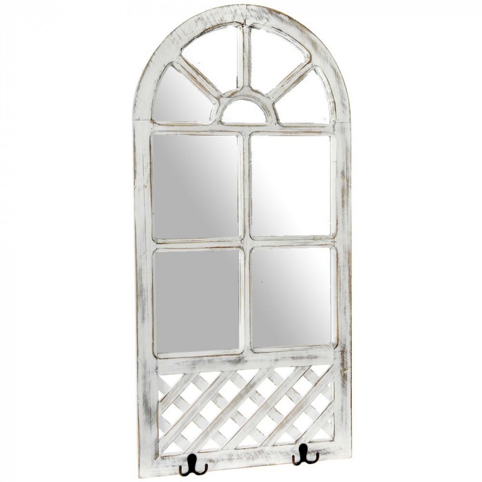 Дървено огледало със закачалки, ретро, бяло, 42х86 см