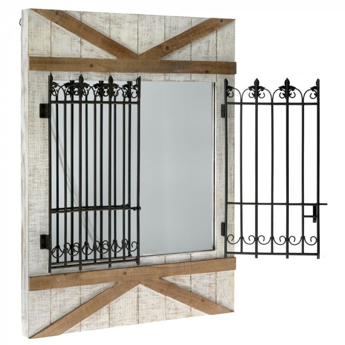 Дървено огледало с метални кепенци, 70х93 см