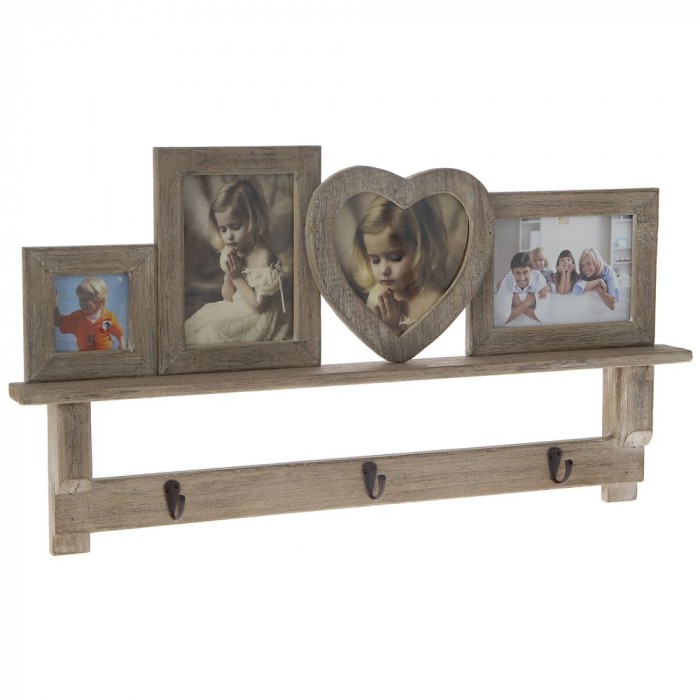 Закачалка с рамки за снимки, претрито дърво, 70х39 см