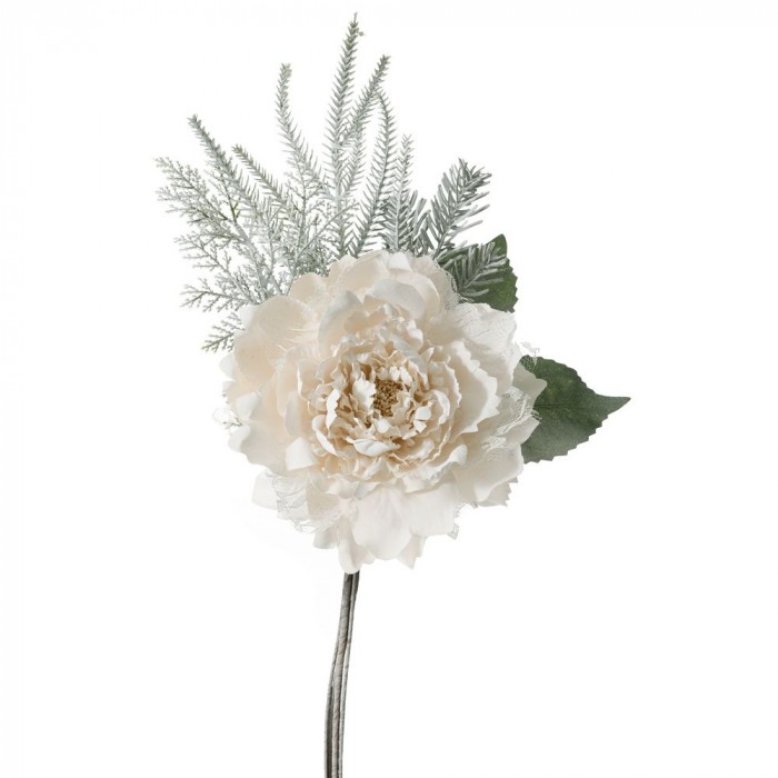 Заскрежено цвете с дантела и елхови клонки, крем, 23х50 см