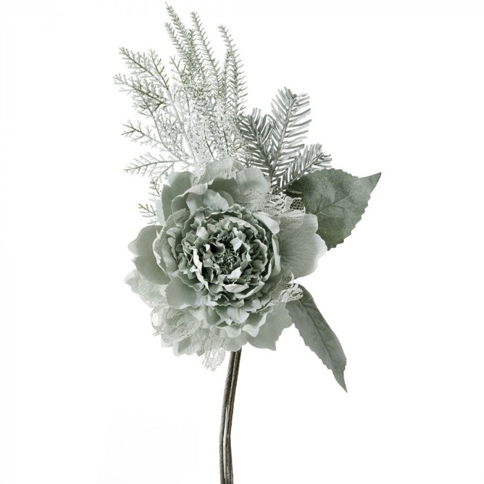 Заскрежено цвете с дантела и елхови клонки, зелено, 23х50 см