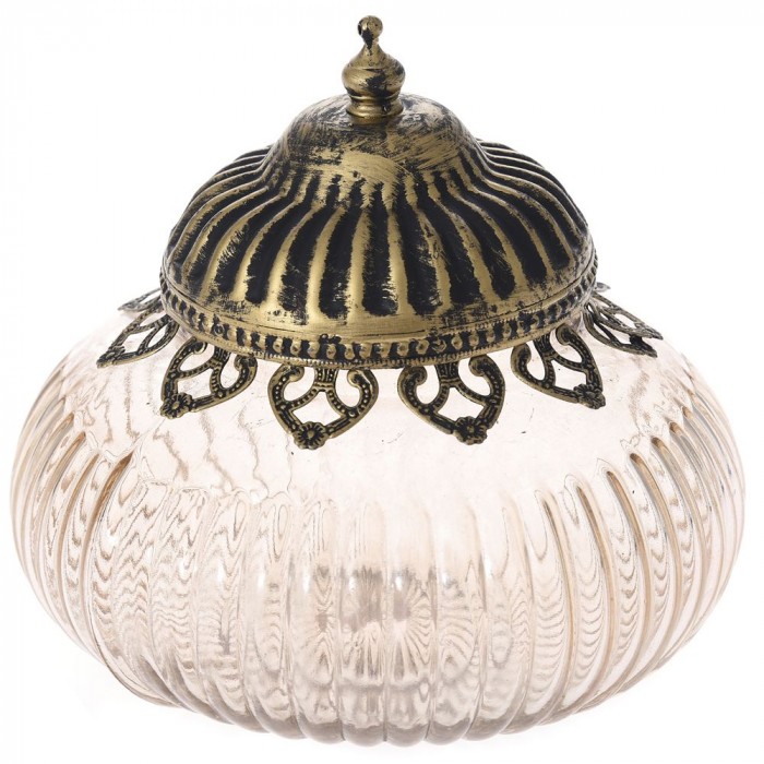 Захарница розово стъкло с метален обков и капак, Ф18х16 см