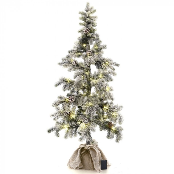 Заснежена елха с шишарки и лампички, 140 см