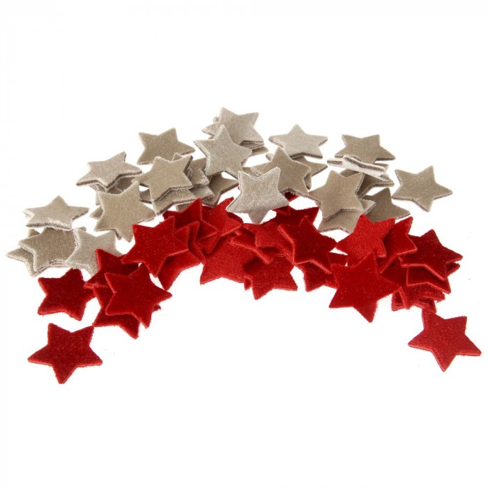 Кадифени звезди бяло червено, к-т от 60бр, 4СМ
