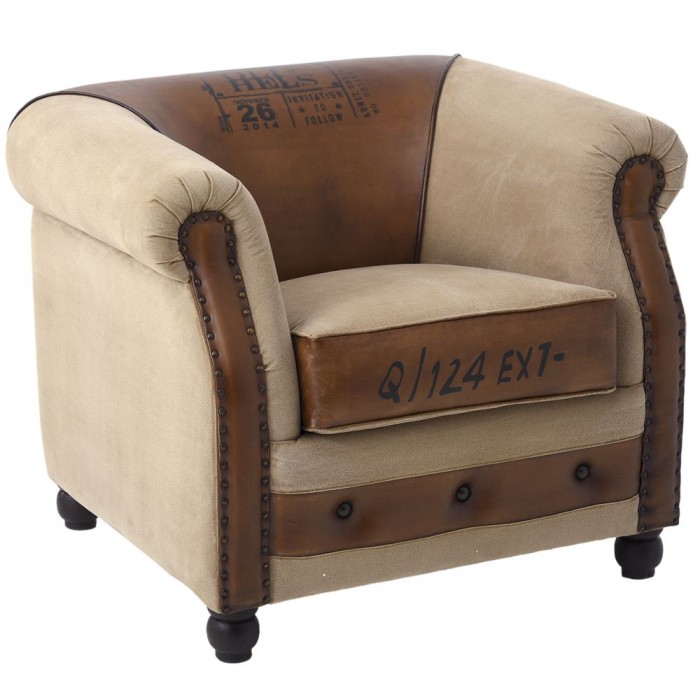 Канапе от кожа и плат, беж и кафяво, 93х80х73 см