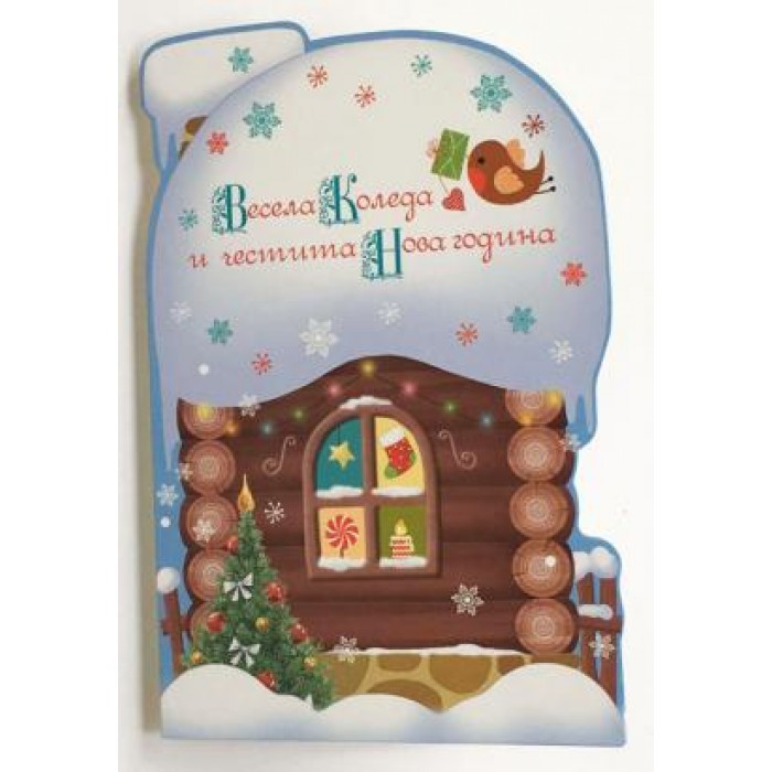 Картичка и плик ЕC “Заснежена къща Весела Коледа... “ 112X175ММ