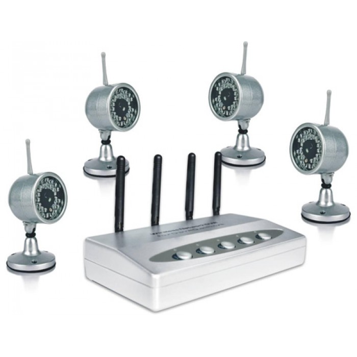 Keep your property secure and get peace of mind with the ingenious 4 Way Wireless Camera. This fantastic 4 Way Wireless CCTV System is the easy way to assure the safety of your property and loved ones. The system has a full colour day, and a black and white infrared red night setting, which you can view on a connected TV or monitor. It is perfect for monitoring your home, work and other properties, or for ensuring that your family is safe day or night. If you want to check on a new baby sitter, or keep you prize possessions secure then this is the system for you. The cameras are housed in a robust and water proofed casing so that you can film inside or out and in any conditions. You can view one camera at a time, with the receiver changing automatically between them, or you can view all four images at once. It is possible to set up an individual camera to record at a given time, and each camera is protected with its own password. There is also an ingenious motion detector mode so if anything moves in the vicinity of your property you will be able to capture it, while saving disk space.