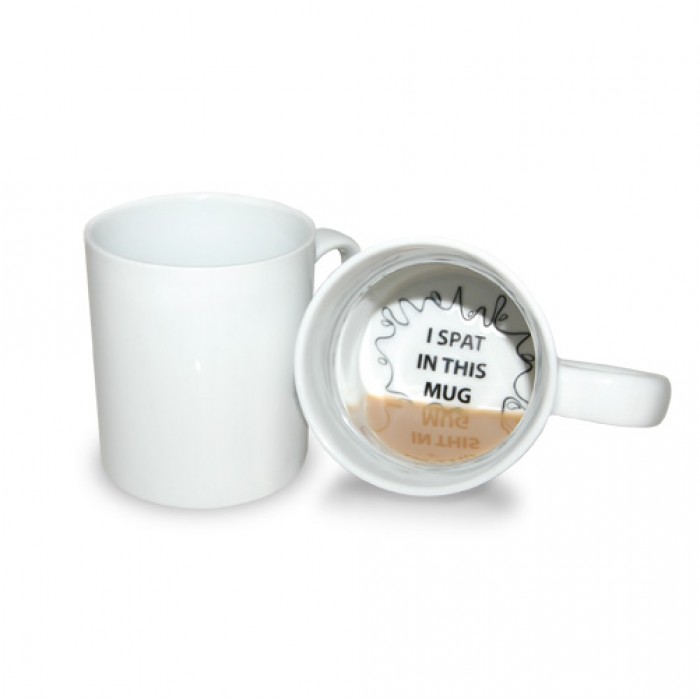 - Good quality white drinking mug featuring a surprise 'I Spat in this Mug' hidden message on the inside base!