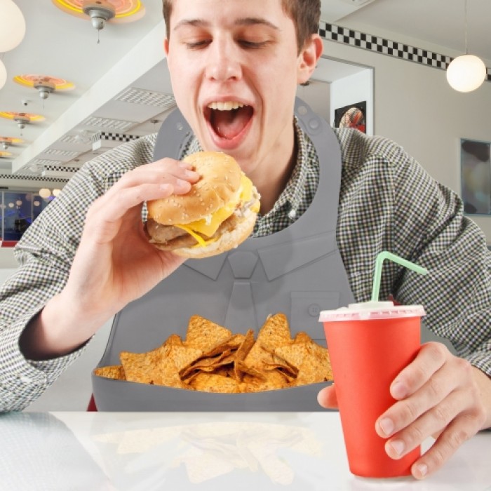 Never drop a crumb again. Perfect for any not-so-graceful, crumb causing, sauce dropping, pastry loving guzzler; this re-useable adult food catcher will allow you to snack and lounge in peace.