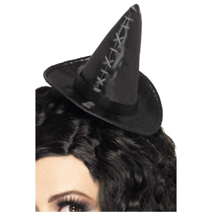 Шапка Вещица на диадема, черна с шевове е изработена от плат и пвц. Подходяща е за Хелоуин, парти, карнавал, реквизит, бал с маски и други празненства.