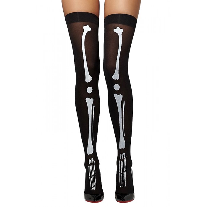 Дамски дълги чорапи с щампа Скелет. Подходящ аксесоар за Хелоуин, парти, карнавал, училищни празненства и всякакви забавления.