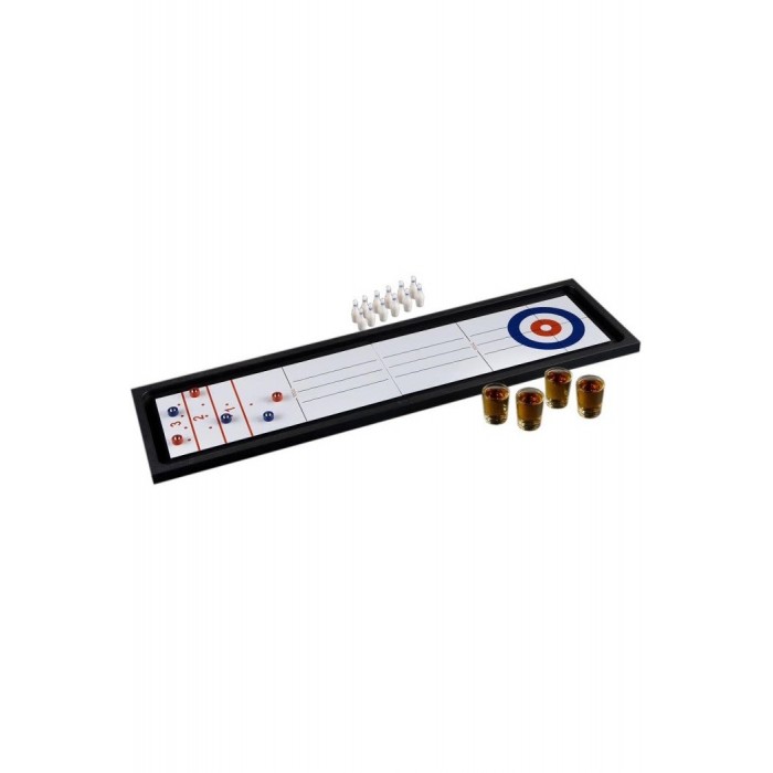 Боулинг с шотове - оригинален подарък за рождени дни и всякакви други поводи. Комплектът съдържа дъска от две части, 6 топчета, 4 чашки и 10 кегли. Размер на игралното поле: 72см х 19см.